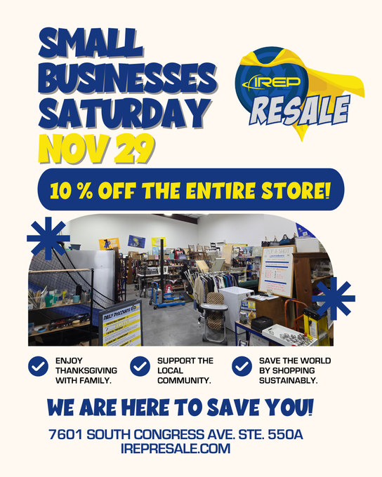 IN-STORE ONLY! There are occasionally five Saturdays in a month, and on those Saturdays, we offer 10% off the entire store. Luckily, this Saturday is the fifth one, and it is Small Business Saturday! Enjoy some sustainable holiday shopping and support local small businesses in Austin.